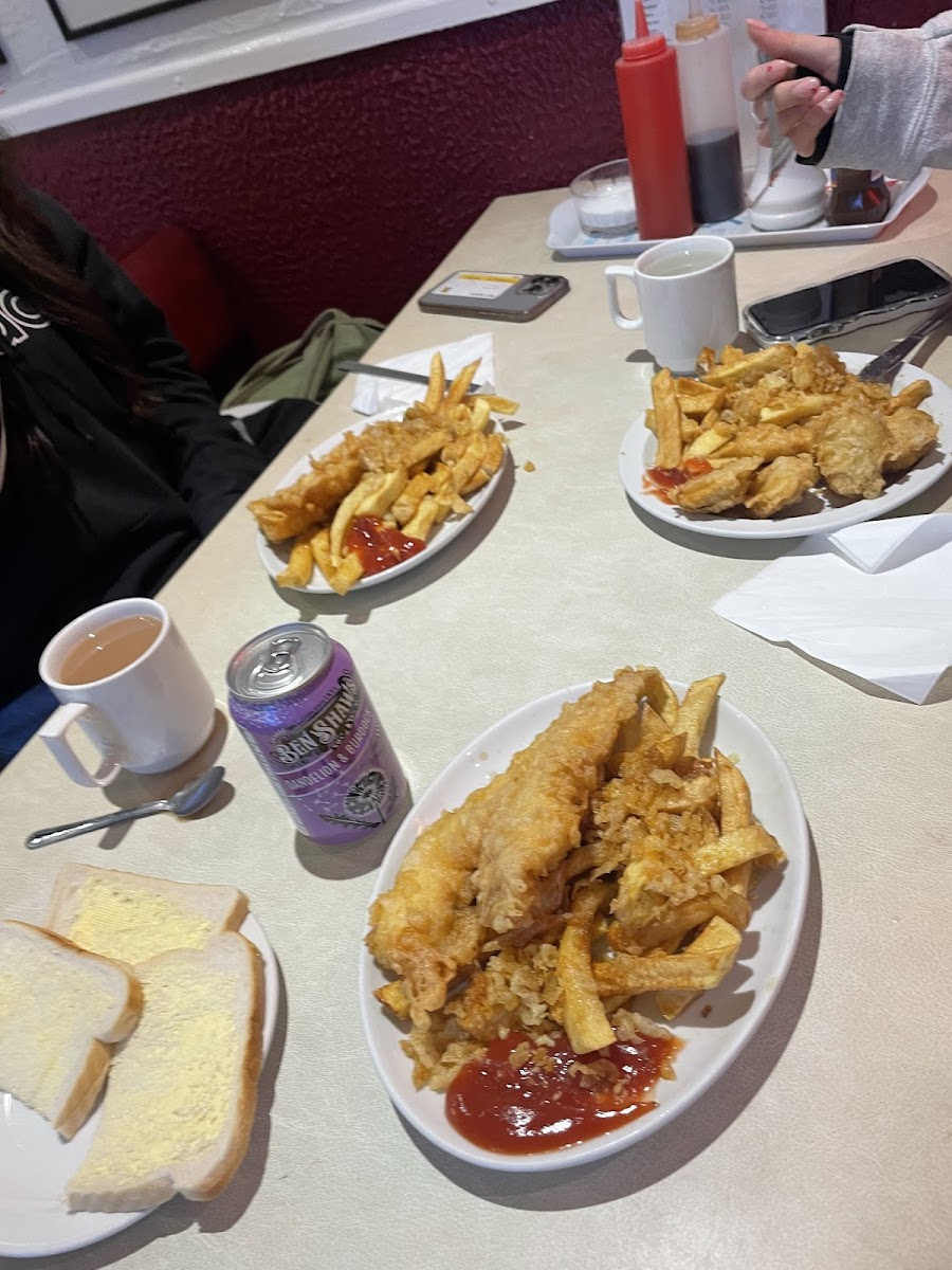 Beyond the signature dish, the menu includes a few hearty options that reflect the shop’s straightforward, satisfying approach. Haggis and Chips brings a Scottish twist to the takeaway lineup, offering a rich and savory flavor that pairs well with the thick-cut chips. If you’re in the mood for seafood beyond cod, the Fried Shrimp is another solid choice-crispy, lightly seasoned, and easy to share. For those who prefer poultry, Chicken and Chips provides a reliable alternative that still captures the same freshly fried texture the kitchen is known for.